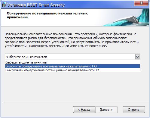 Включить обнаружение потенциально нежелательного ПО - Далее - Установить.