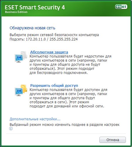 Выбор режима сетевой безопасности компьютера - Абсолютная защита.