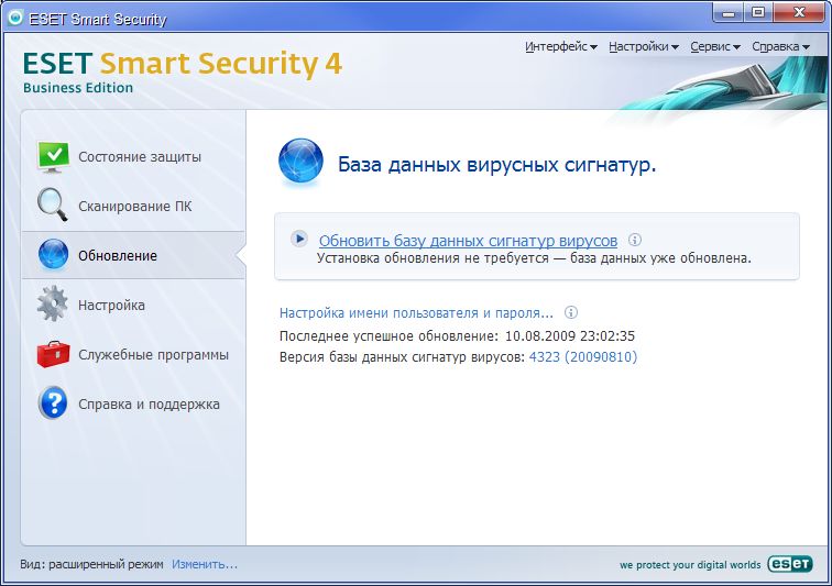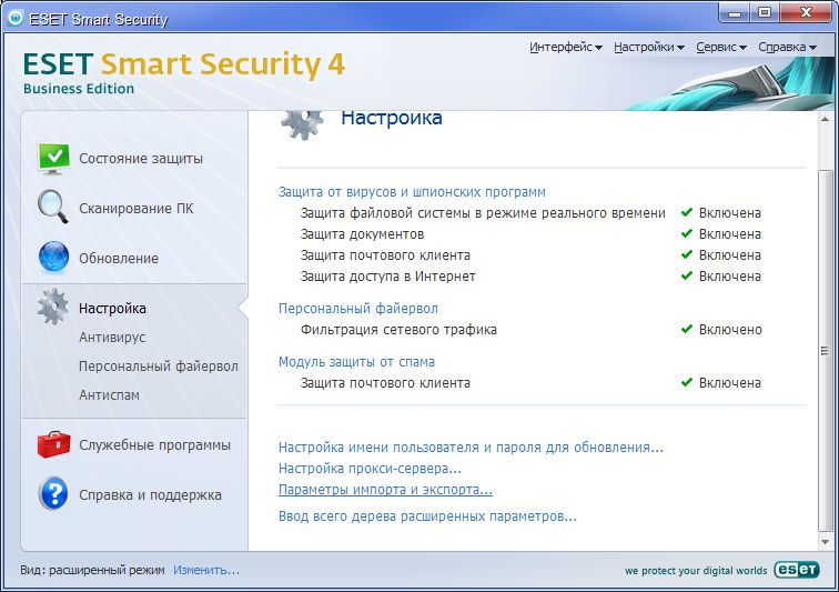 Простота использования. Компактный и интуитивно понятный пользовательский интерфейс, минимальные обращения к пользователю при работе делают использование ESET NOD32 Smart Security простым и удобным.