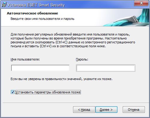 Поставить галку "Установить параметры обновления позже" - Далее