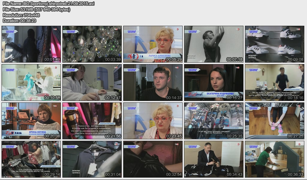 Информация о фильме.Название: Спортивный ширпотреб Оригинальное название: Без обмана. Год выхода: 21.09.2015 Жанр: Документальный Страна: Россия Продолжительность: 00:39:00 Язык: Русский О фильме: Почему в магазине спортивной одежды стоит удушающий химический запах? Как плохие кроссовки превращают здорового человека в инвалида? Стоит ли верить производителям, которые говорят, что их спортивная одежда "дышит"? Как разобраться в море спортивного ширпотреба и купить одежду, которая прослужит долго и не причинит ущерба кошельку и здоровью? Файл:Качество: SATRip Формат: AVI Видео: Xvid; 704x448; 1799kbps; 25.00fps Аудио: MPEG Audio Layer 3; 48000Hz; stereo; 128kbps Размер: 532 МБ Скачать: Вам необходимо ЗАРЕГИСТРИРОВАТЬСЯ НА ФОРУМЕ, чтобы скачать файл.