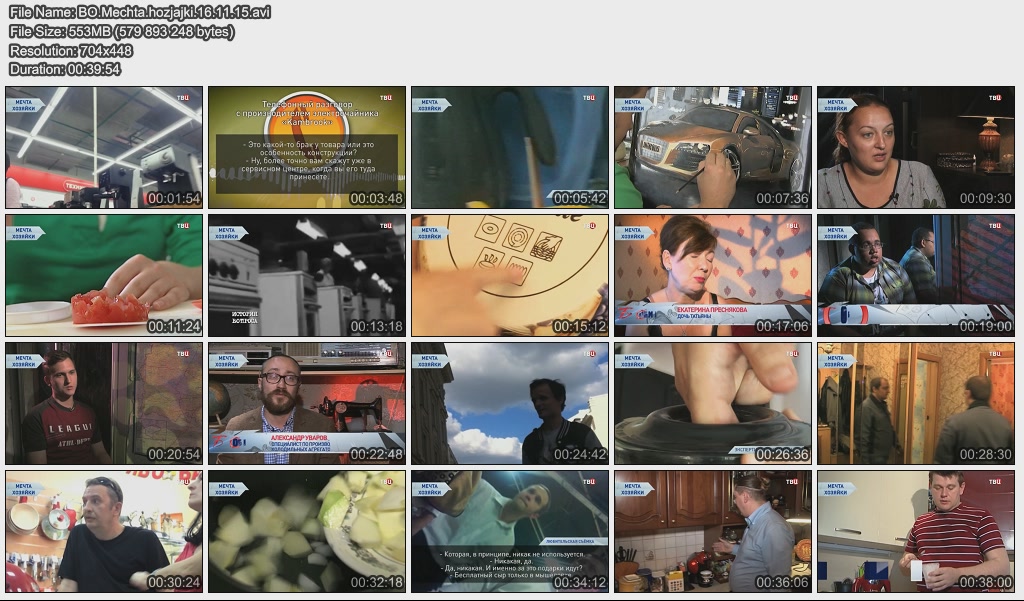 Информация о фильме.Название: Мечта хозяйки Оригинальное название: Без обмана. Год выхода: 16.11.2015 Жанр: Документальный Страна: Россия Продолжительность: 00:39:00 Язык: Русский О фильме: Прошли времена, когда женщины пользовались на кухне только плитой, тёркой и мясорубкой. Сегодня можно купить приспособления на каждый "чих"... Как обманывают хозяек производители кухонных "гаджетов", и стоит ли на них вообще тратить деньги? Об этом и не только в очередном выпуске программы "Без обмана". Файл:Качество: SATRip Формат: AVI Видео: XviD; 704х448, 25 fps, 1800 kbps Аудио: MPEG Layer 3, 48 kHz, 2 ch, ~128.00 kbps Размер: 553.03 МБ Скачать: Вам необходимо ЗАРЕГИСТРИРОВАТЬСЯ НА ФОРУМЕ, чтобы скачать файл.