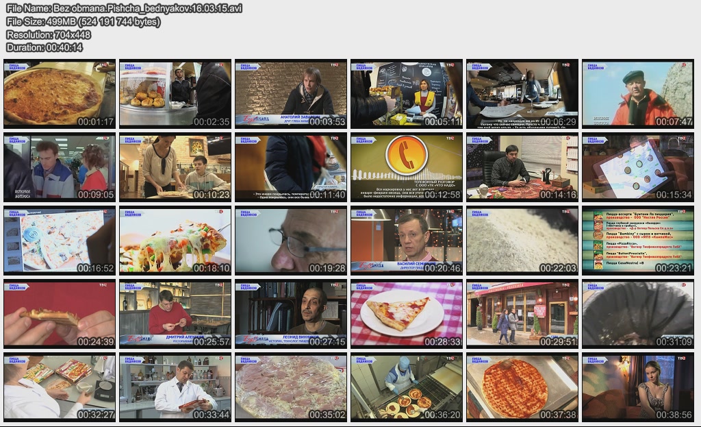Информация о фильме.Название: Пища бедняков Оригинальное название: Без обмана. Год выхода: 16.03.2015 Жанр: Документальный Страна: Россия Продолжительность: 00:40:14 Язык: Русский О фильме:Пиццу называют "пищей бедняков" – давным-давно итальянские крестьяне придумали запекать на лепёшке из теста всё, что найдётся в доме. В сочетании с сыром получалось вкусно и сытно! А как делают "пиццу по-русски"? По тому же принципу! Какую пиццу развозят по домам и офисам, подают в дорогих ресторанах и дешёвых пиццериях? Файл:Качество: SATRip Формат: AVI Видео: 704x448 (1.57:1), 25 fps, XviD build 50 ~1599 kbps avg, 0.20 bit/pixel Аудио: 48 kHz, MPEG Layer 3, 2 ch, ~128.00 kbps avg Размер: 499.91 МБ Скачать: Вам необходимо ЗАРЕГИСТРИРОВАТЬСЯ НА ФОРУМЕ, чтобы скачать файл.