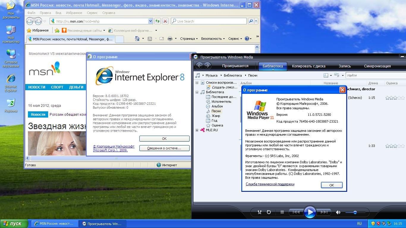 - Internet Explorer 8.0.6001.18702 с обновлениями от 15.01.13