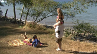 Грудастая Samantha и Mistress T выгуливают у реки новую лошадку (ClubStiletto)