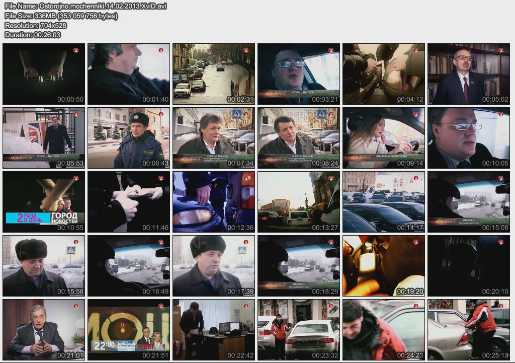 Информация о фильме.Название: Осторожно, мошенники! Автоподставы Оригинальное название: Осторожно, мошенники! Год выхода: 14.02.2013 Жанр: Документальный Страна: Россия, ОАО "ТВ Центр" Продолжительность: 00:26:29 Язык: русский Ведущие: Вика Коломыцына, Игорь Швыткин и Олег Лобаков О фильме:Очередной выпуск программы "Осторожно, мошенники! Автоподставы" посвящен ДТП, в которых злоумышленники пытаются делать из законопослушных автовладельцев "без вины виноватых". Специалисты утверждают, что только в Москве автоподставы приносят мошенникам до двух миллионов долларов в месяц! В этом выпуске передачи телезрители услышат истории из уст пострадавших. По традиции, авторы программы детально разберут каждый конкретный случай и проведут реконструкции ДТП. Наши эксперты дадут советы автолюбителям, как избежать автоподставы. А в рубрике "Проверено на себе", рискуя жизнью, ведущие сами выступят в роли мошенников и проверят, удастся ли им развести незадачливых автолюбителей на деньги прямо на дороге. Файл:Формат: AVI Качество: IPTVRip Видео: 704x528 (1.33:1), 25 fps, XviD MPEG-4 ~1655 kbps avg, 0.18 bit/pixel Аудио: 48 kHz, MPEG Layer 3, 2 ch, ~128.00 kbps avg Размер: 336 Mb Скачать: Вам необходимо ЗАРЕГИСТРИРОВАТЬСЯ НА ФОРУМЕ, чтобы скачать файл.