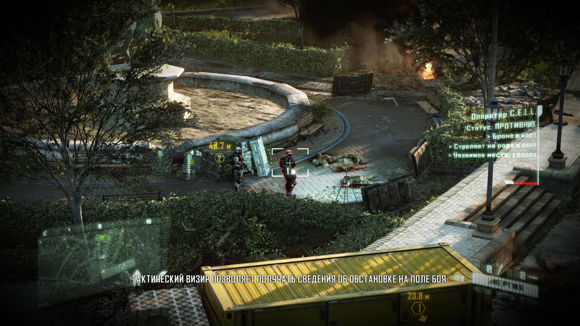 - В игре можно применять различные тактики и способности. В этом Вам поможет обмундирование Nanosuit, с помощью настройки которого можно научить своего персонажа многому новому, что должно пригодиться в бою.