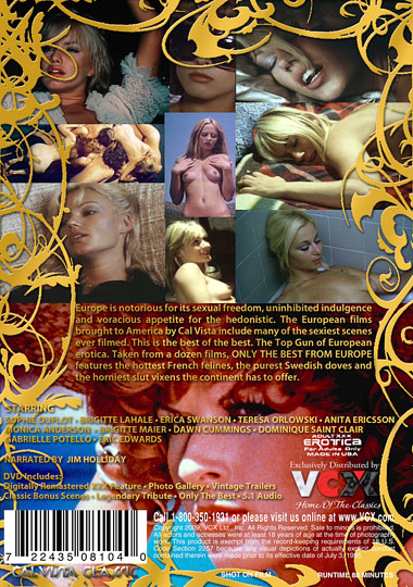 Europe's in notorious for its sexual freedom, uninhibited indulgence and voracious appetite for the hedonistic. The European films brought to America by Cal Vista include many of the sexiest scenes ever filmed. This is the best of the best. The Top Gun of European erotica. Taken from a dozen films, Only The Best From Europe features the hottest French felines, the purest Swedish doves and the horniest slut vixens the continent has to offer.
