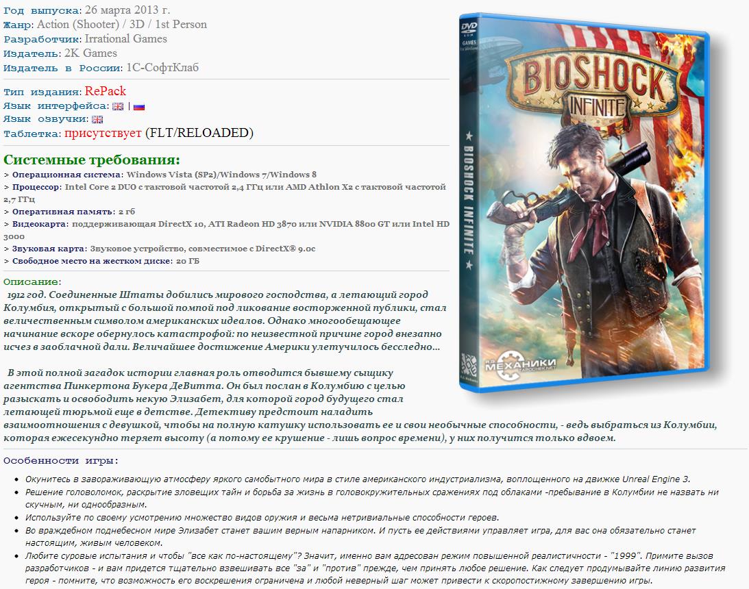 Re: BioShock Infinite [v 1.1.21.7860 + 2 DLC] (2013) PC | RePack