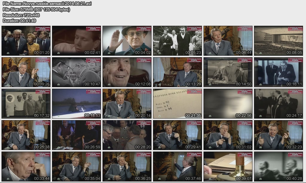 Информация о фильме.Название: От Брежнева до Ельцина: КРЕМЛЬ в историях болезней Оригинальное название: Новые русские сенсации. Год выхода: 21.06.2014 Жанр: Документальный Страна: Россия Продолжительность: 00:41:49 Язык: Русский О фильме:Тайна смерти самого загадочного руководителя страны. Кто втыкал иглы в спину генсека? Правда ли, что «железного» Андропова сгубила плесень? Что делал рядом с умирающим Юрием Владимировичем Михаил Сергеевич? А также — врач, который несколько раз спасал Андропова, держал в руках сердце Брежнева и продлевал жизнь Горбачёву. Секретная история болезни генсеков и президентов — в «Новых русских сенсациях». Файл:Качество: SATRip Формат: AVI Видео: MPEG-4; 720x448, 25.00 fps, 1800 kbps Аудио: MP3; 48000 Hz, 128 kbps, 2 Channel Размер: 579 МБ Скачать: Вам необходимо ЗАРЕГИСТРИРОВАТЬСЯ НА ФОРУМЕ, чтобы скачать файл.