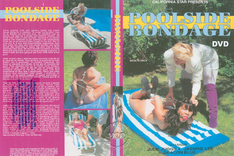 Every summer Julie and Jasmine spend one month house sitting for a neighbor. To break the boredom they try to distract Jim the pool man. An impatient man by nature, Jim opts for a simple and effective solution. He binds them both to patio furniture. Jasmine is somewhat used to this treatment as her mistress Julie occasionally binds her as punishment (see "Caught In The Act"). But for Julie this is a rare and uncomfortable experience. Now that these two sexy and over-sexed females are tightly bound and squirming in ropes, the pool man is more distracted than ever. He finds himself compelled to fondle them and retie them in new exciting bondage positions. It doesn't look like he's going to get much work done at the pool.