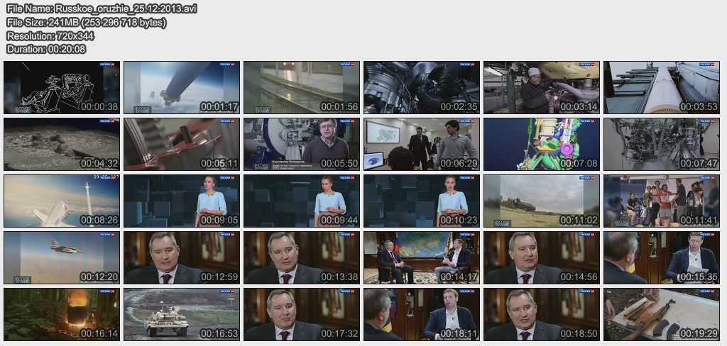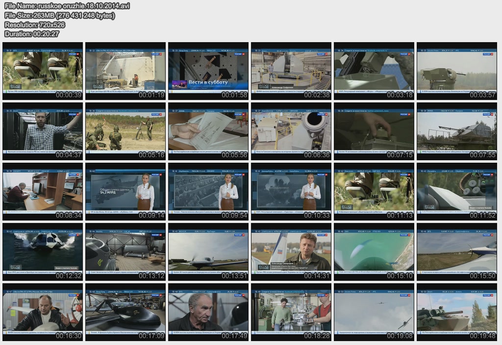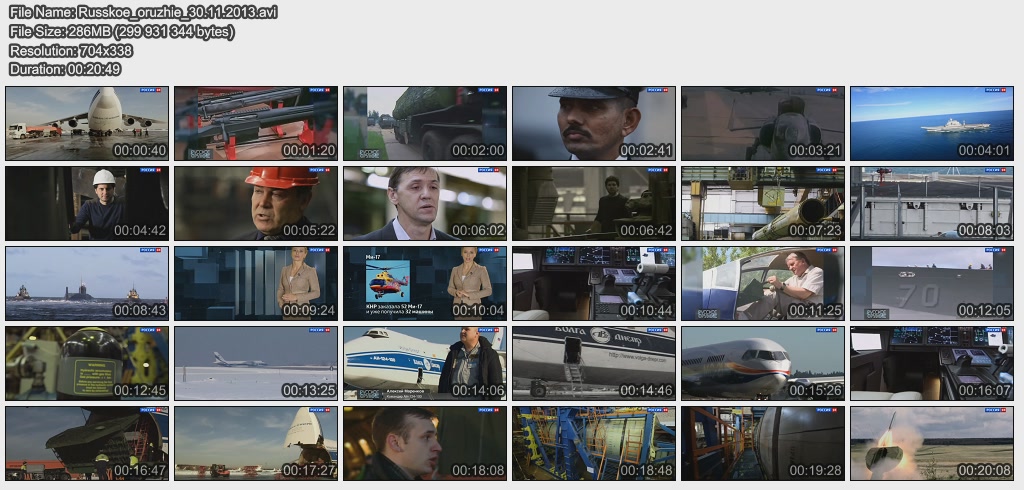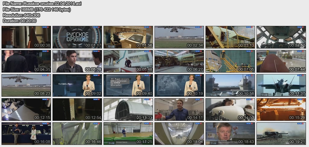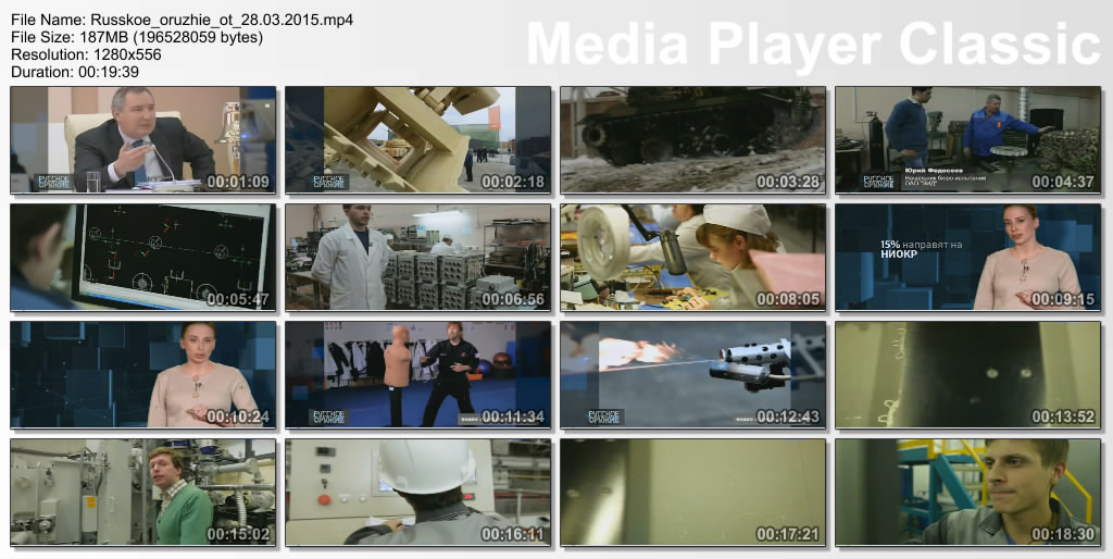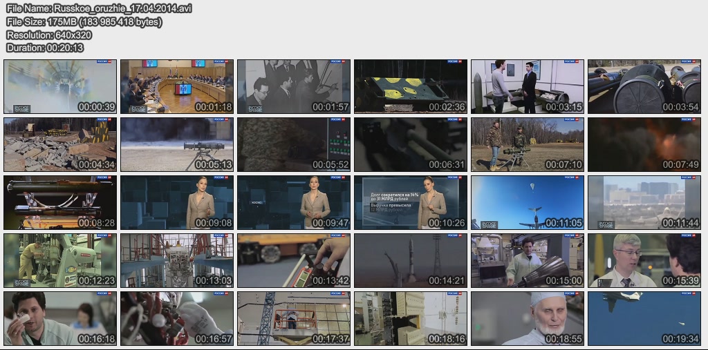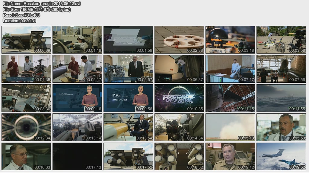 Информация о фильме.Название: Русское оружие Оригинальное название: Русское оружие Год выхода: 13.04.2015 Жанр: Документальный Страна: Россия Продолжительность: 00:20:34 Язык: Русский О фильме:Подготовка кадров для ОПК: конференция Рогозина и Минобрнауки, а так же реализация программы подготовки новых кадров в компании "Аэрокомпозит". Доходы России от торговли оружием за 2014 год. Доходы России от оружейных контрактов с Ираком, скандал в Индии. Как на заводе "Энергомаш" реализуется программа импортозамещения? Файл:Качество: SATRip Формат: AVI Видео: MPEG-4,DivX, 704x526 , 1741 Kbps; 25.00 fps Аудио: MP3, 48000 Hz, stereo, 128 kb/s Размер: 333.7 Mb Скачать: Вам необходимо ЗАРЕГИСТРИРОВАТЬСЯ НА ФОРУМЕ, чтобы скачать файл.