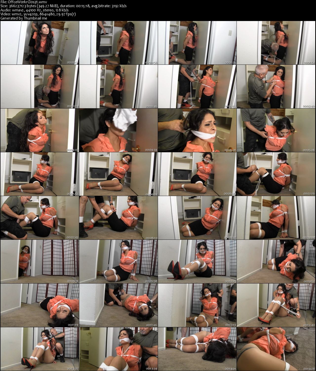(Ссылка на каталог) !!! !!!  File Name : OffceW0rkrCl0s3t.wmv File Size : 349.27 MB Resolution : 864x480 Duration : 00:15:22 Video : WMV2 (WMV2), 2 915 Kbps, 30.000 fps Audio : WMA (WMA2), 128 Kbps, 44.1 KHz, 2 channels, 1 stream Скачать: Вам необходимо ЗАРЕГИСТРИРОВАТЬСЯ НА ФОРУМЕ, чтобы скачать файл.