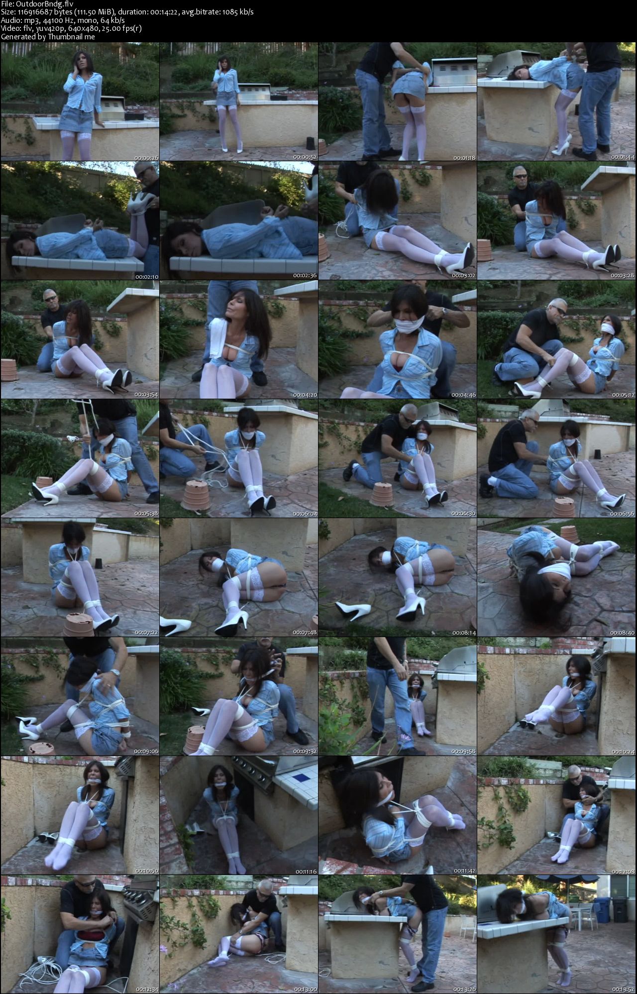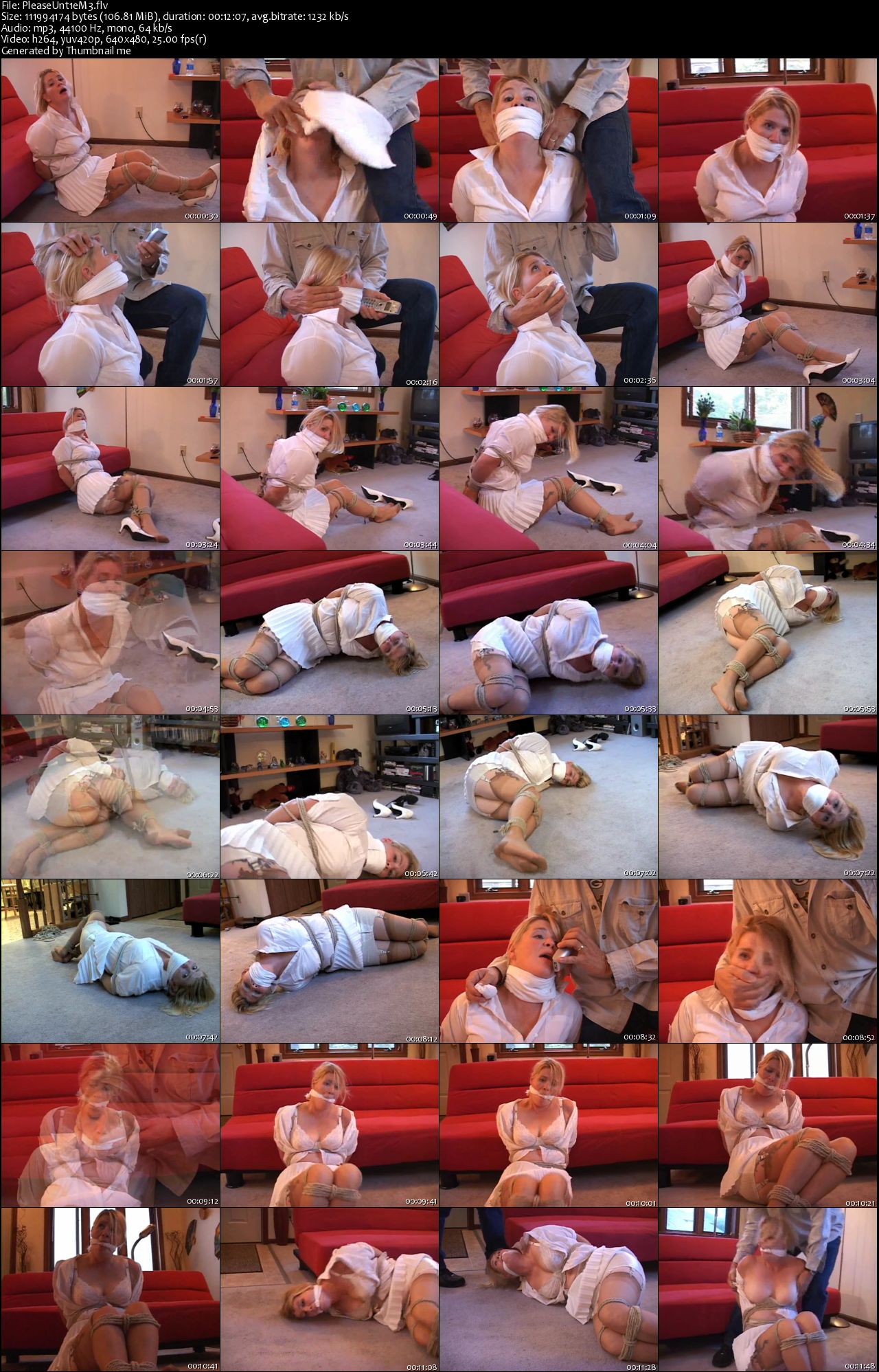 File Name : PartyHostessTiedUp.flv File Size : 96.81 MB Resolution : 640x480 Duration : 00:11:13 Video : AVC (AVC), 1 135 Kbps, 25.000 fps Audio : MPEG Audio (MPEG-1 Audio layer 3), 64.0 Kbps (CBR), 44.1 KHz, 1 channel, 1 stream Скачать: Вам необходимо ЗАРЕГИСТРИРОВАТЬСЯ НА ФОРУМЕ, чтобы скачать файл.