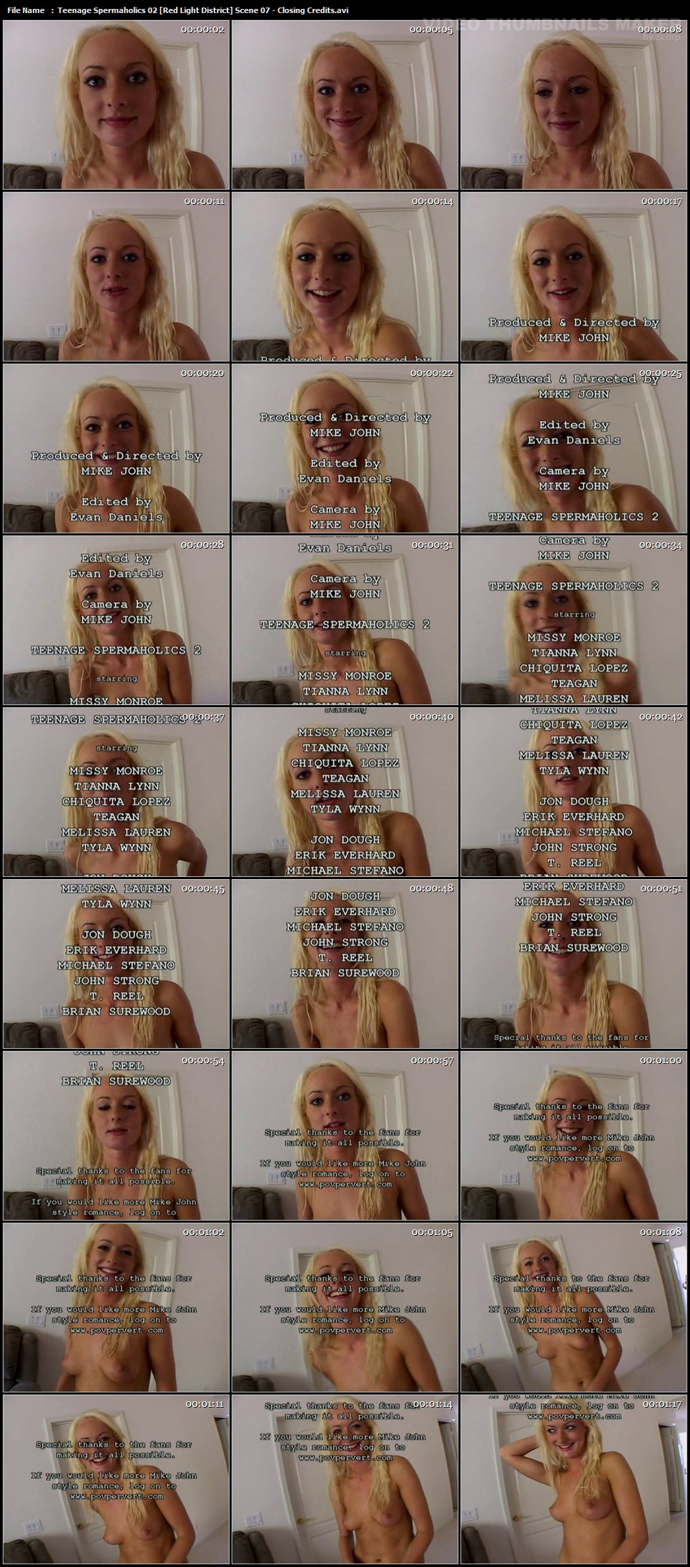 Teenage Spermaholics 2 / Подростки спермоголики 2  Год выпуска: 2004 Продолжительность: 02:43:31 Размер: 1,36 ГБ Видео: 512x384 (1.33:1), 29.970 fps, XviD Codec 1.0 RC4 (build 30) ~1103 kbps avg, 0.19 bit/pixel Аудио: 48 kHz, MPEG Layer 3, 2 ch, ~132.62 kbps avg В ролях: Teagan Presley, Melissa Lauren, Missy Monroe, Tyla Wynn, Tiana Lynn, Tee Reel, Chiquita Lopez, John Strong, Erik Everhard, Jon Dough, Brian Surewood, Michael Stefano, Mike John 1 2 3 4