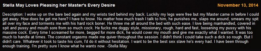 SexualDisgrace.com / (13.11.14) Stella May Loves Pleasing her Master's Every Desire / 1080p | video:mp4 | 1920*1080 | time:00:30:29 | size:700mb | Download: Вам необходимо ЗАРЕГИСТРИРОВАТЬСЯ НА ФОРУМЕ, чтобы скачать файл.