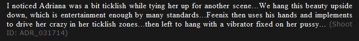 Автор | Тема: TiedForTickling [01-05-2014] Adriana Chechik / "Hung for Tickles" / 720p (Прочитано 296 раз) |