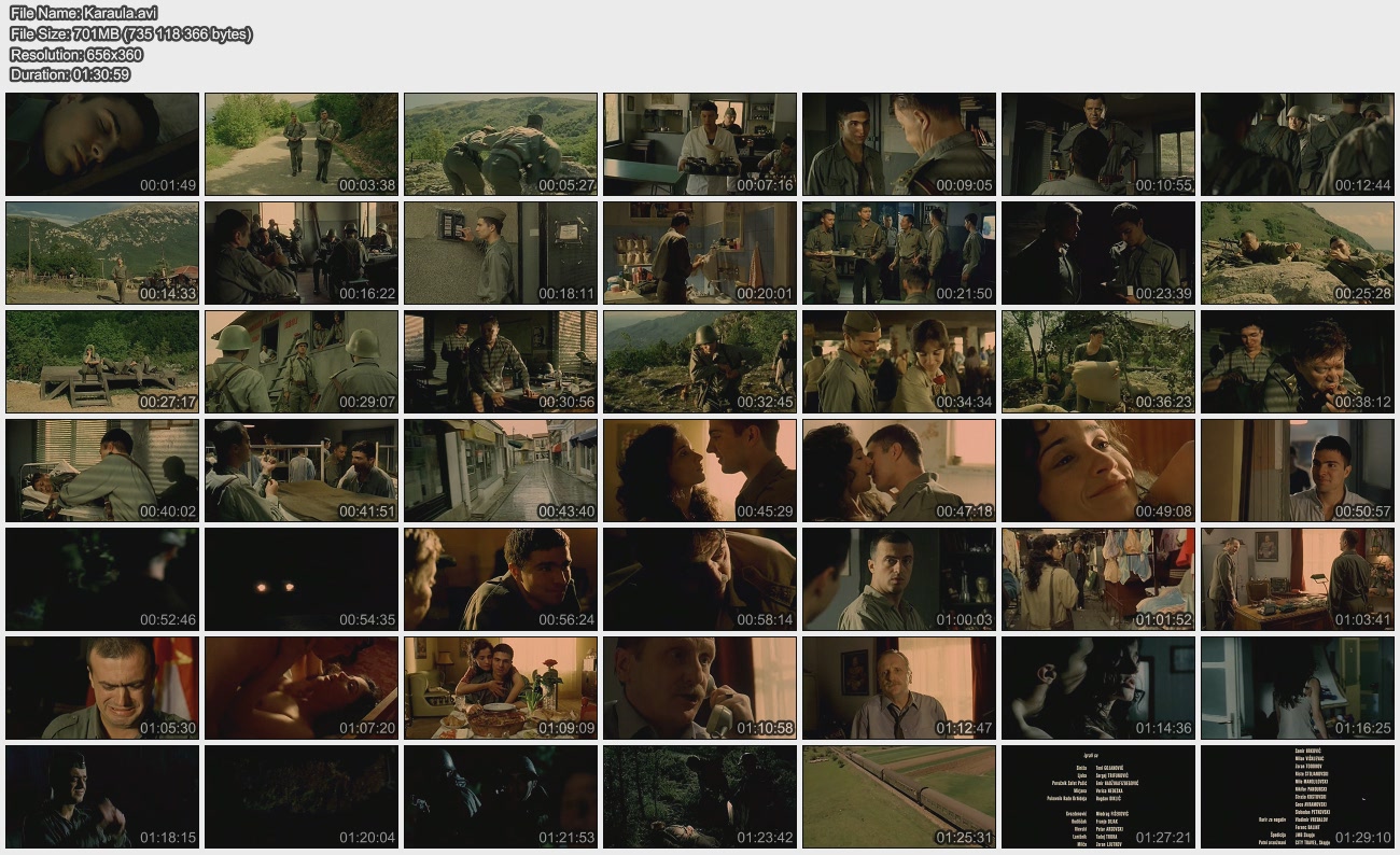 Описание: Фильм истинной любви балканского истории - секс, страсть, любовь, трагедия. Если вы посмотрите некоторые из американских романтических комедий до просмотра Karaula, вы увидите, diffеrences. И есть вторая линия рассказа (то есть немного сложно для людей за пределами Балкан, чтобы понять - что и является причиной для слова на экране в конце фильма) - все главные персонажи из разных экс-югославских странах, но они ничем не отличаются, как люди. Итак, когда вы начинаете смотреть фильм вы получаете чувство счастливой истории, может быть, даже комедии, но фильм гораздо глубже и глубже. Очень хороший фильм, заставляет вас думать. Актеры прекрасны, может быть, потому, что это правдивая история, и это не сильно отличается от того, что происходит в их реальной жизни. Так пойдите и посмотрите, если у вас есть шанс, вы бы не жалею об этом.