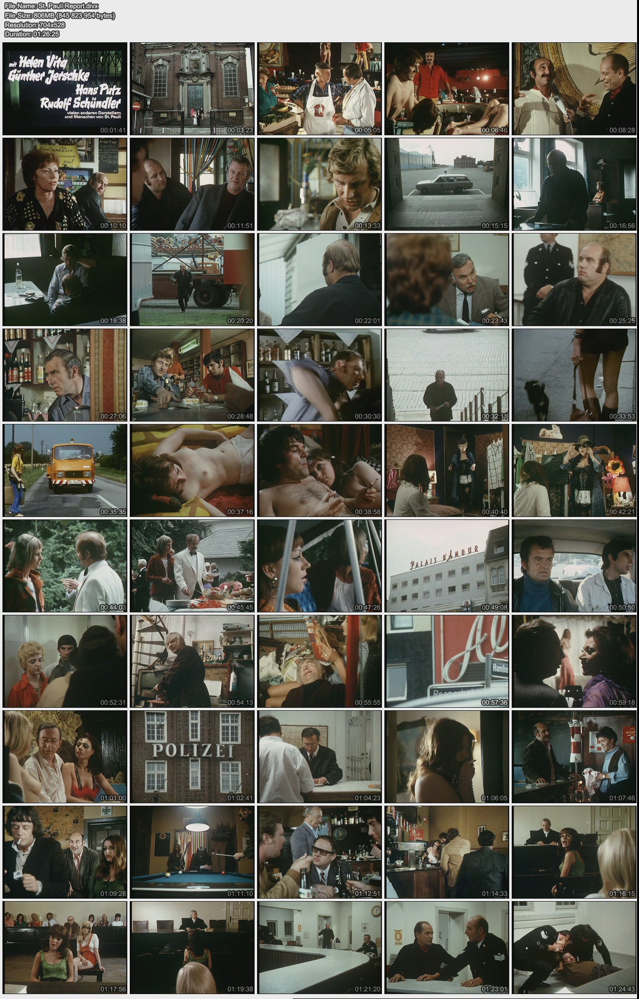 Описание: Jürgen Rolands St. Pauli-Report ist ein deutscher Dokumentarfilm aus dem Jahr 1971, der unter der Regiearbeit von Jürgen Roland entstand. Der Film zählt zum Genre der Report-Filme (Schulmädchen-Report), gilt aber als einer der besseren Filme dieses Genres , da die Erotik nur am Rande thematisiert wird. Produziert wurde der Film von der Münchener Rapid-Film, deren Besitzer Wolf C. Hartwig sich zu dieser Zeit auf die Produktion von Report-Filmen spezialisierte.