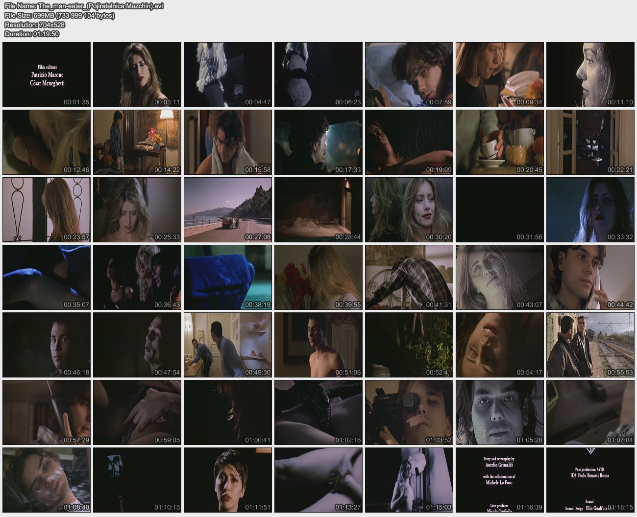 В самом начале после титров симпатичная женщина говорит в камеру, что женщины изменяют мужчинам, ведя себя при этом, как образцовые домохозяйки. Камера отодвигается, и эта же женщина, но уже обнаженная, призывает своих подруг по полу бросить все к черту и уезжать из своих городков со своими парнями, если в них еще осталось пламя страсти. Далее следует длинная сцена в стриптиз-клубе, а потом начинается фильм. Молодой парень Валерио из-за прогулов висит на волоске в колледже, что расстраивает его мать (Лоредана Сольфици). Потом в черно-белом изображении женщины рассказывают о своих детях. Каждый короткий рассказ снабжен названием: Марта, Николь, Ванесса. Так вот Ванесса домохозяйкой и образцовой матерью быть не собирается. Ее привлекают только мужики, на поиски которых она отправляется, когда стемнеет. Себя она считает "пожирательницей мужчин". Причем, сцены секса сняты предельно откровенно. Ванесса хочет быть самой собой, но ее считают шлюхой или нимфоманкой, но мужества быть самой собой у нее хватает. Она снимает на улице Валерио и приводит его к себе домой. Часто визуальный ряд сопровождается комментариями и рассуждениями от ее лица. Ванесса обнаженной купается в море, а Валерио копается в ящиках ее стола, после чего принимает душ. Смотреть эту, как написано на обложке "чувственную мелодраму", у меня нет ни времени, ни желания. Когда во весь экран показывают минет, сюжет меня особо не интересует. Это не чувственная мелодрама, а секс на грани порнухи. Я лично предпочитаю хорошую порнуху таким чувственным мелодрамам. Смотрите сами, что будет с Ванессой в Валерио в этой ленте, которая может оказаться совсем неплохой. Режиссер был сценаристом у Тинто Брасса в фильме "Почта Тинто Брасса". (М. Иванов)