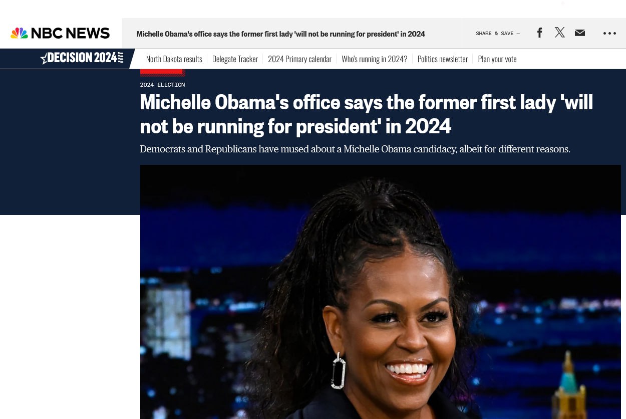 У демократов тоже всё ожидаемо – кампания валится по всем возможным направлениям и азимутам. Рейтинги Джо Байдена, хоть и по чуть-чуть, но постоянно снижаются, особенно после тех дней, когда Дед снова что-нибудь учудит. Камала Харрис вообще не может идти с её нынешними рейтингами на выборы, потому что это будет позор. Хиллари Клинтон уже не боец – возраст. Да и отсутствие аденохрома или то, что он уже не действует на ее организм, сильно сказалось на её здоровье. Мишель Обама – возможный вариант. Чёрная и женщина, однако у неё высоки антирейтинги.